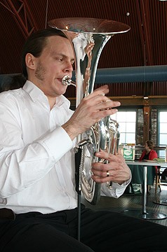 Also the alto and baritone horns are heavy if you play it a longer period of time. With the ERGObrass playing support the instrument just floats weightless on front of you and you can turn it any direction while you play. It also keep the player automatically in good posture. That is important for efficient breathing. Also left hand fingers are relaxed on valve triggers.