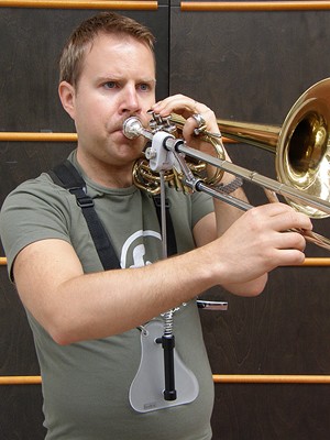 Craig Parmerlee, Philharmonic Orchestra of Indianapolis USA, playing his Alexander F contrabass trombone with the ERGObone. Also Ben van Dijk, Rotterdam Philharmonic, Rotterdam Conservatory, Royal Northern College of Music, Manchester UK has given his good recommendations about the ERGObone system.