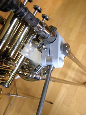 When using the ERGObone on a SuperBone you need to attach the clamp in the upper brace instead of the normal place in a trombone. To keep the horn in a good angle it is needed to add also a plastic part on the third valve cylinder. The clamp is resting to the plastic piece and the horn is in good position for playing. Now you can play as long as you like without getting tired. Also left hand fingers are relaxed on valve triggers.